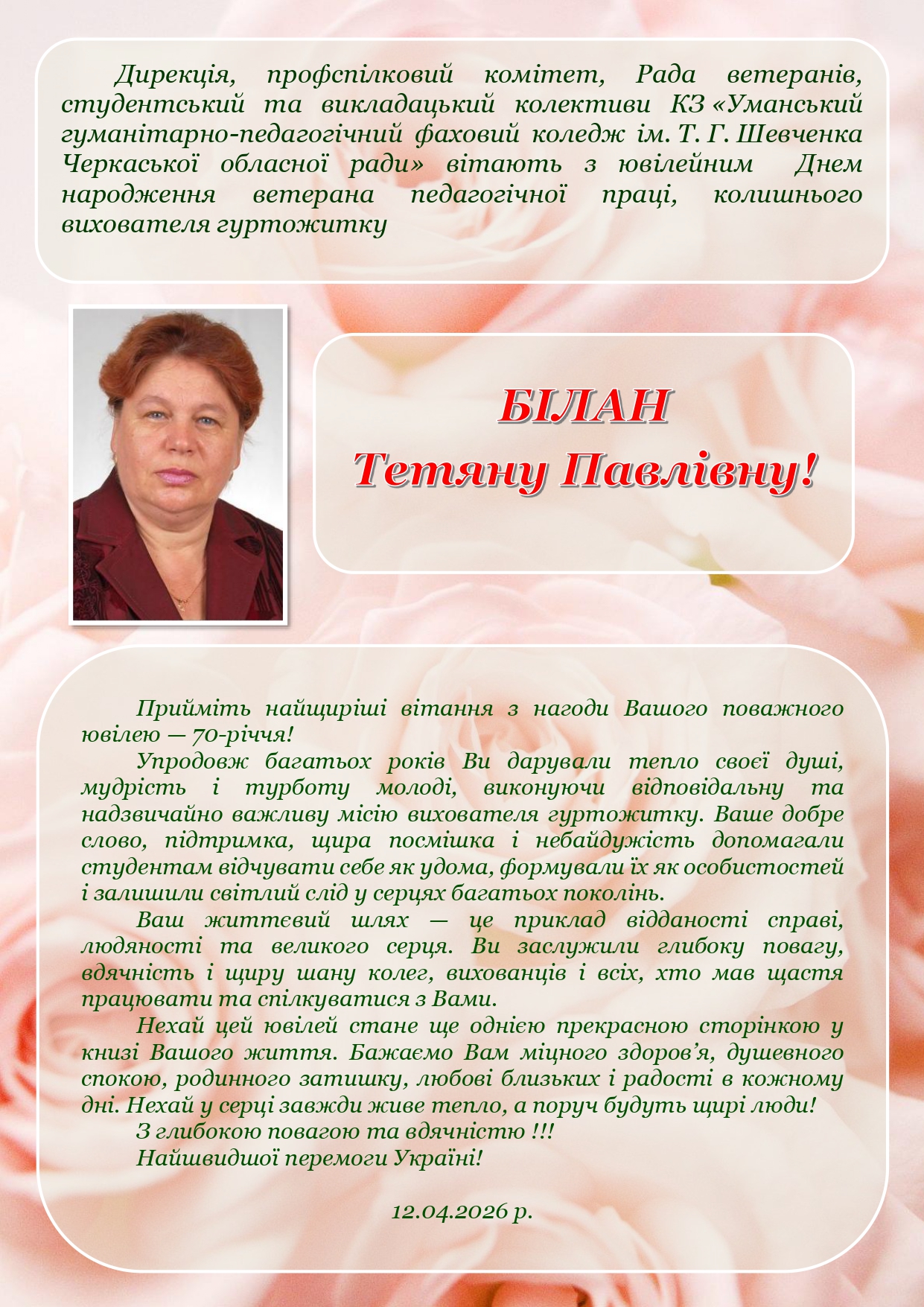 У КЗ «Уманський гуманітарно-педагогічний фаховий коледж ім. Т.Г. Шевченка Черкаської обласної ради», у межах заходів Декадника циклової комісії української мови і літератури з методикою навчання (голова комісії - Галина ВОЙТЕНКО), 10 квітня 2026 року відбулося відкрите показове заняття з української літератури для здобувачів освіти 202-ПДС групи. Детальніше
