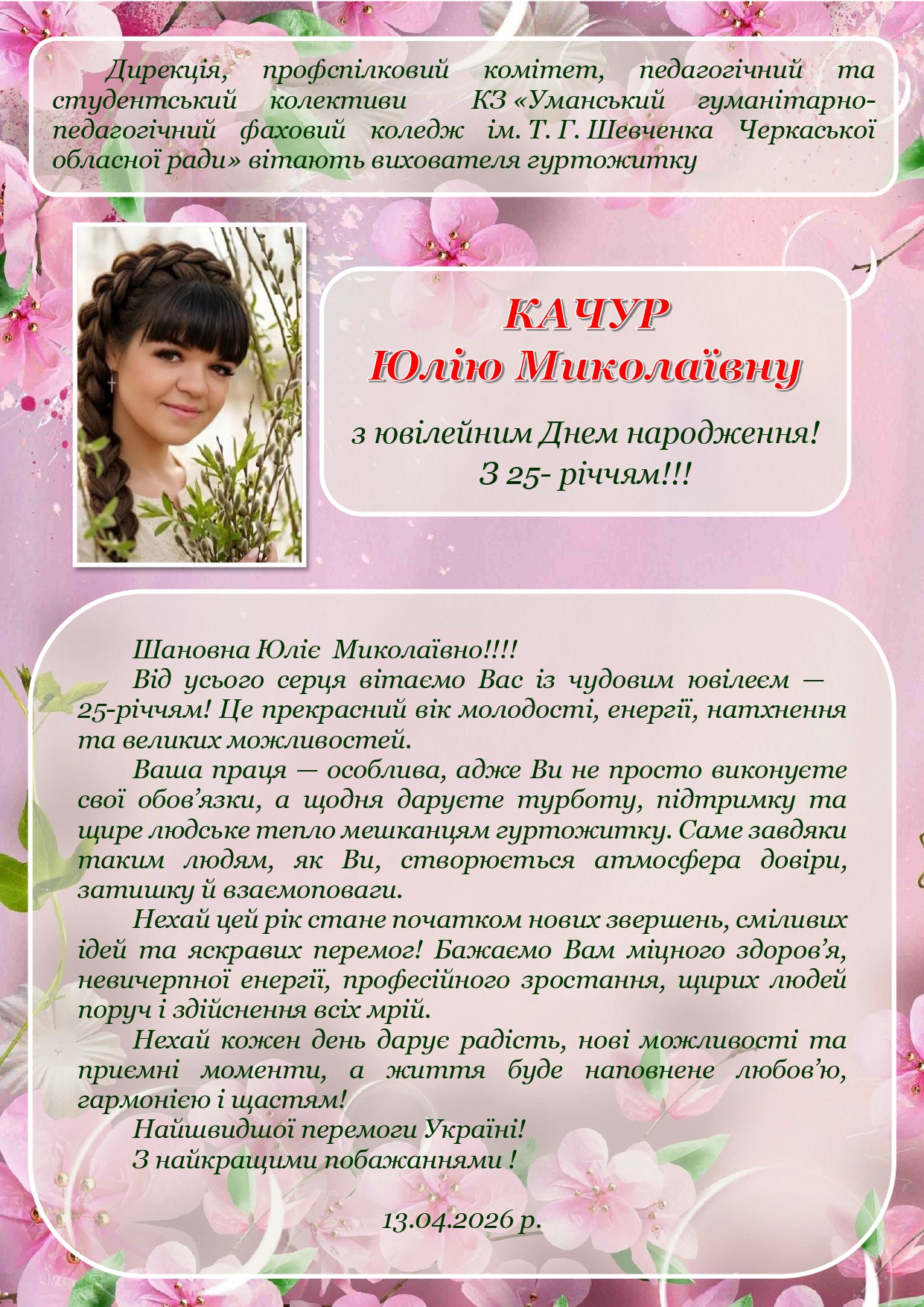 У передвеликодній період, у світлий день Чистого четверга, у нашому коледжі, комунальному закладі «Уманський гуманітарна- педагогічний фаховий коледж ім. Т. Г. Шевченка Черкаської обласної ради» панувала особлива атмосфера — атмосфера єдності, праці та добрих намірів. Детальніше