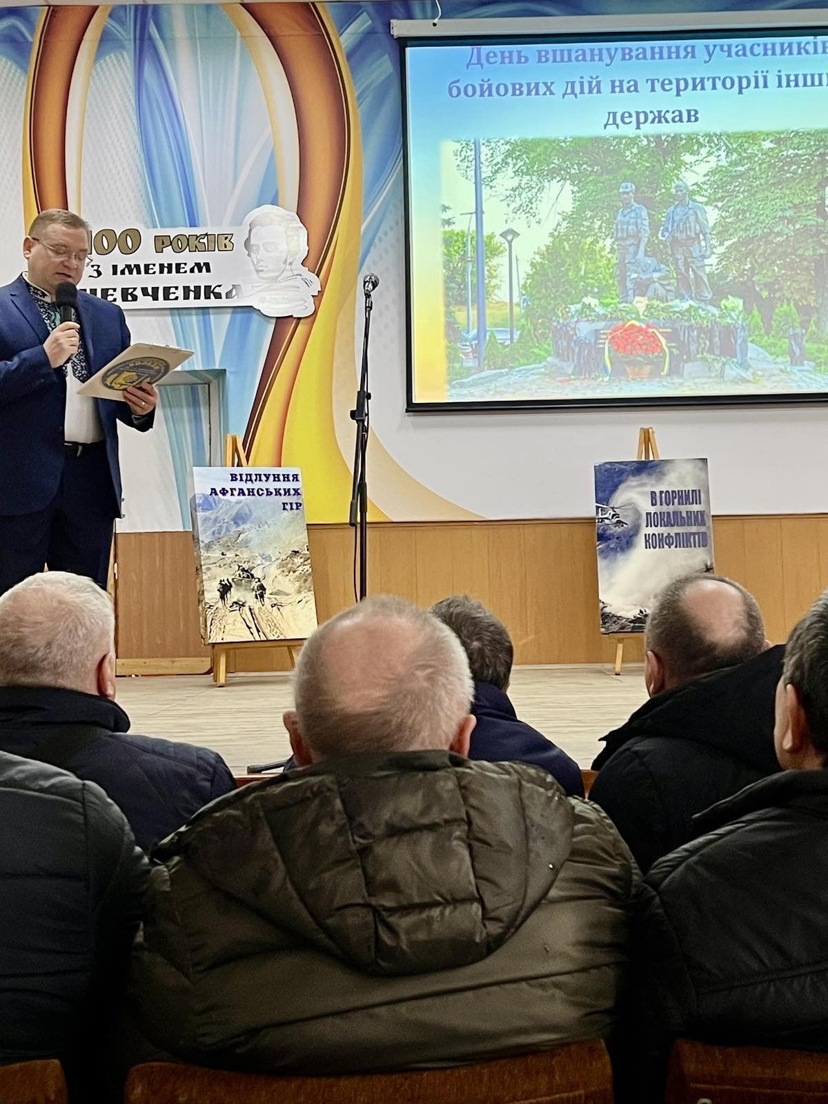 Цього дня в актовій залі КЗ «Уманський гуманітарно- педагогічний фаховий коледж ім. Т. Г. Шевченка Черкаської обласної ради» вшанували учасників бойових дій на території інших держав за участю уманчан, жителів уманського району, що брали участь у військових діях в «гарячих точках» планети, представників громадськості, керівництва міста та району. Детальніше