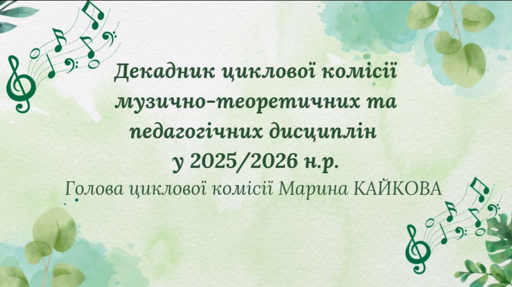 24.03.2026 р. в рамках декадника циклової комісії музично-теоретичних та педагогічних дисциплін КЗ «УГПФК ім. Т. Г. Шевченка ЧОР» викладачами музичних дисциплін Мирославою ПОЛЯНЧУК та Світланою СТАРОДУБ було проведено інтерактивний навчальний захід «Зірковий композитор», спрямований на поглиблення знань здобувачів освіти з музичного мистецтва, розвиток їх творчих здібностей та формування інтересу до композиторської діяльності. Детальніше