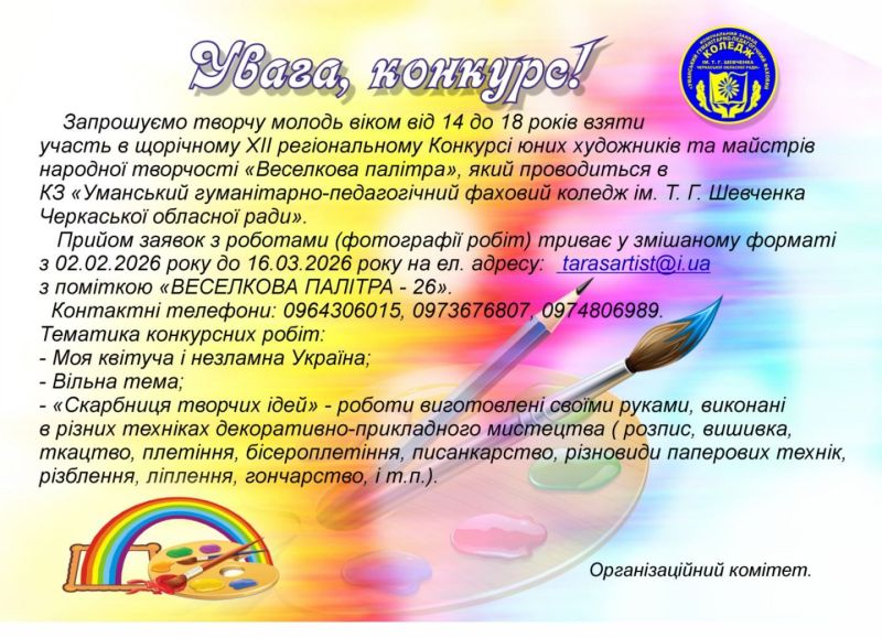 Положення про ХІІ регіональний конкурс юних художників та майстрів народної творчості «Веселкова палітра»