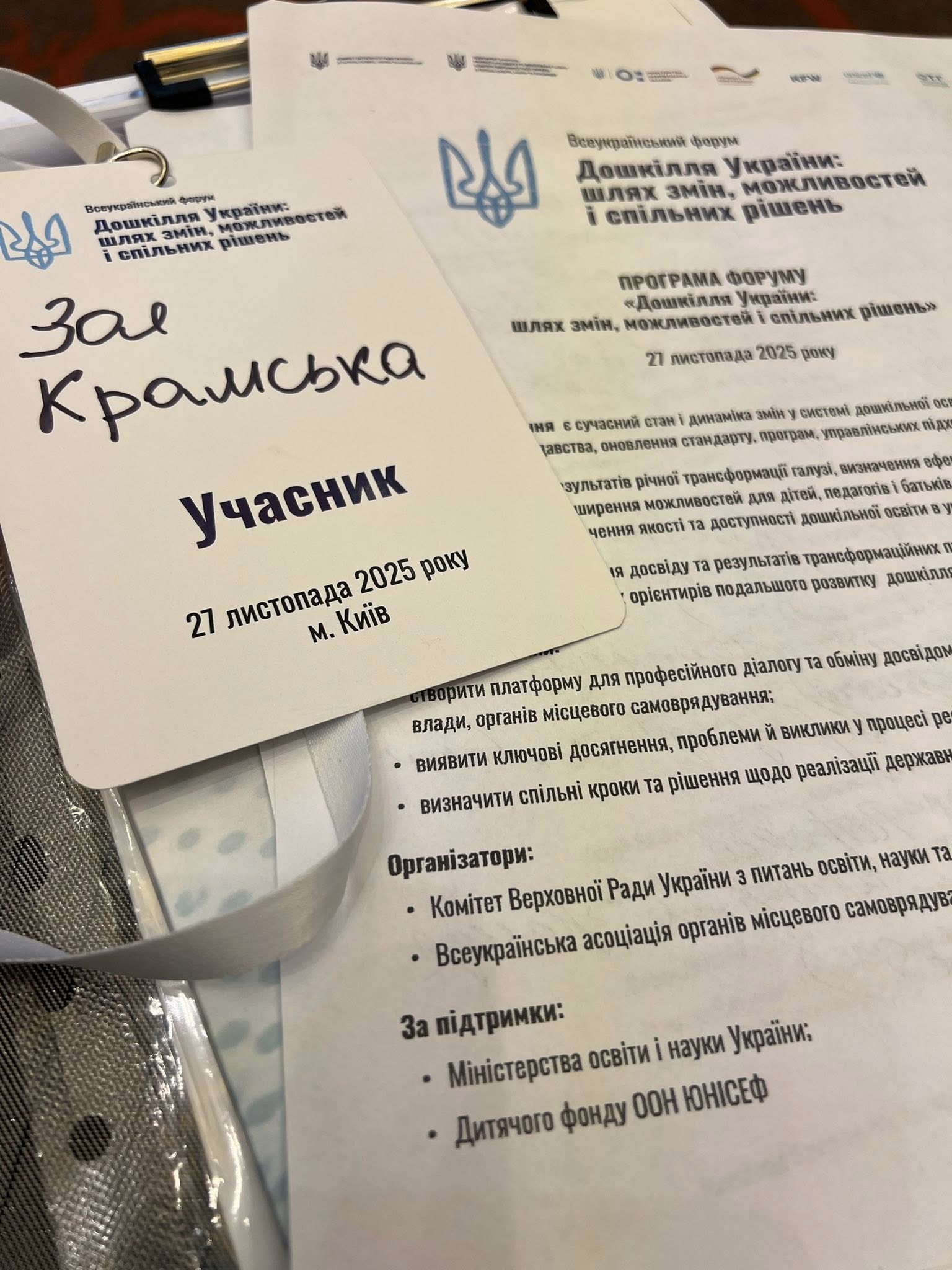 Участь у панельній дискусії «Підвищення якості дошкільної освіти» на Всеукраїнському форумі «Дошкілля України: шлях змін, можливостей і спільних рішень». 27.11.2025 року м.Київ. Детальніше