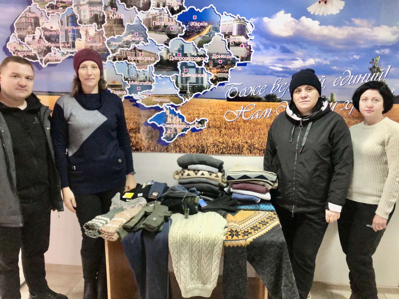 передали 23 теплих светри, 52 пари теплих шкарпеток, рукавички для наших захисників від викладачів та студентів КЗ «Уманський гуманітарно - педагогічний фаховий коледж ім. Т. Г. Шевченка Черкаської обласної ради» через Уманський волонтерський центр допомоги Армії при ГО "Закон і справедливість"( керівник - Кузьменко І. В.).