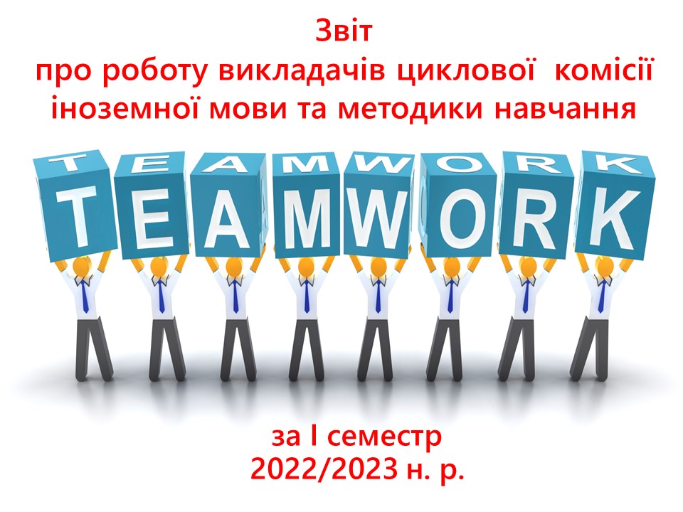 Звітує ЦИКЛОВА КОМІСІЯ ВИКЛАДАЧІВ ІНОЗЕМНОЇ МОВИ І МЕТОДИКИ НАВЧАННЯ (голова - спеціаліст вищої кваліфікаційної категорії Світлана СЛУПІЦЬКА). Детальніше