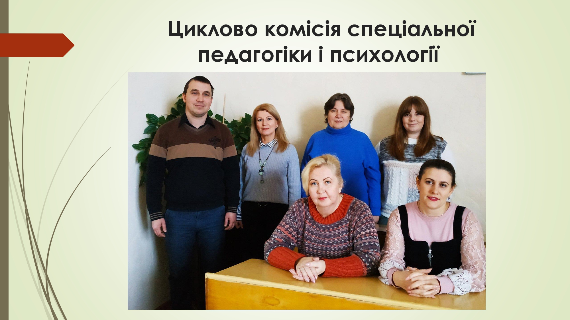 Звітує ЦИКЛОВА КОМІСІЯ ВИКЛАДАЧІВ СПЕЦІАЛЬНОЇ ПЕДАГОГІКИ І ПСИХОЛОГІЇ (голова - спеціаліст вищої кваліфікаційної категорії Ольга БИСТРАНІВСЬКА). Детальніше