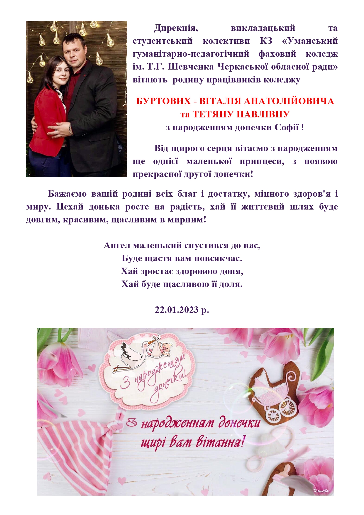 Вітаємо з народженням донечки!