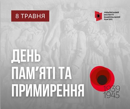 8 травня, у День памʼяті та примирення, українці вшановують тих, хто у Другій світовій війні боровся з нацизмом та переміг його, а також усіх жертв тієї війни. Детальніше