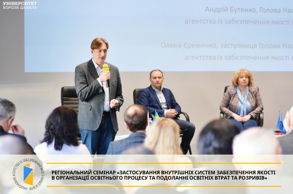 23 березня в Університеті Короля Данила Національне агентство провело регіональний семінар «Застосування внутрішніх систем забезпечення якості в організації освітнього процесу та подоланні освітніх втрат та розривів». Детальніше