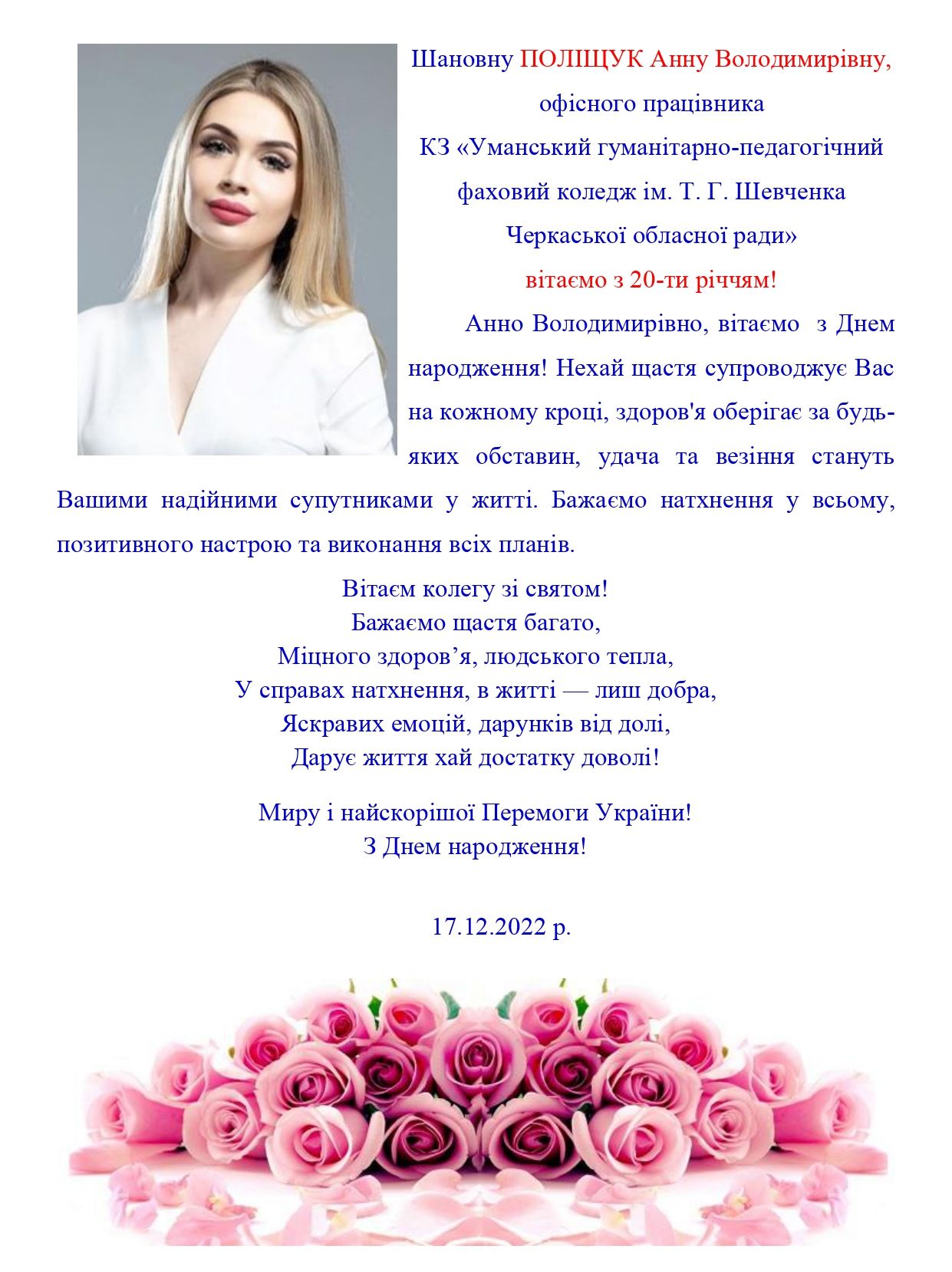 15 грудня 2022 року КЗ « Уманський гуманітарно-педагогічний фаховий коледж ім. Т. Г. Шевченка Черкаської обласної ради» гостинно зустрів учнів 9-х класів Уманської гімназії 4, їх батьків, учителів та гостей Уманського району. Детальніше