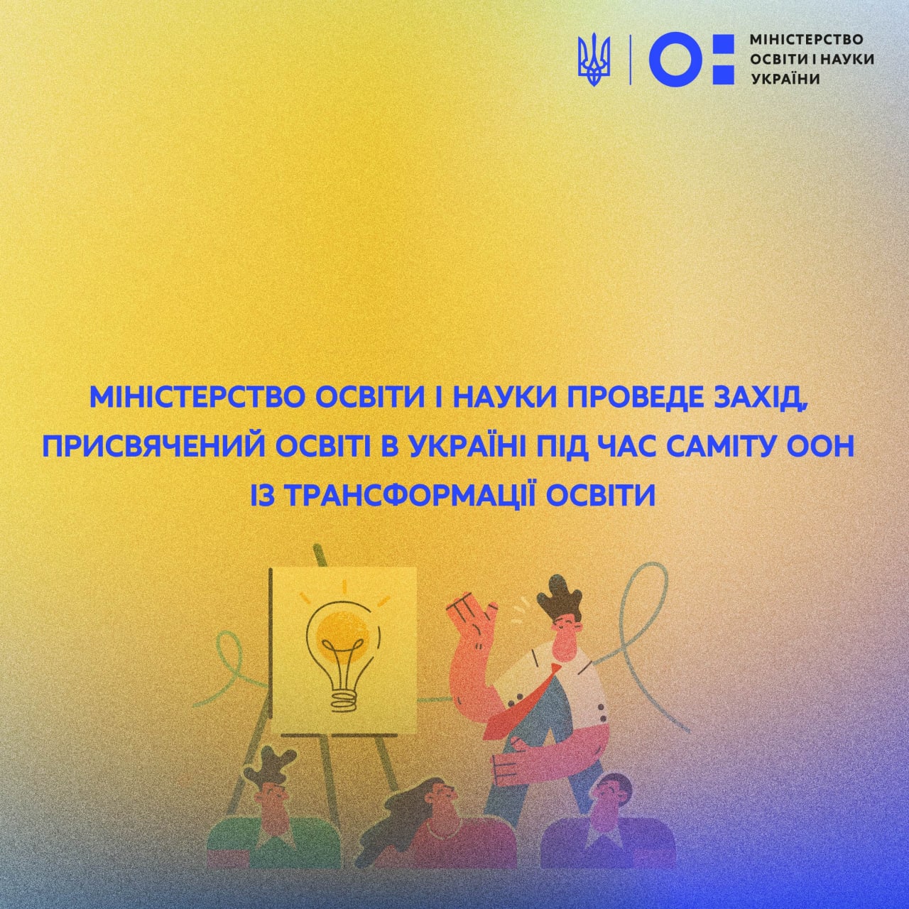 17 вересня 2022 року Міністерство освіти і науки України проведе захід «Трансформація освіти в часи кризи: погляд України» в межах Саміту ООН з питань трансформації освіти, що відбуватиметься в Нью-Йорку. Захід організовано у партнерстві з Міністерством освіти і науки Польщі та ЮНЕСКО. Детальніше