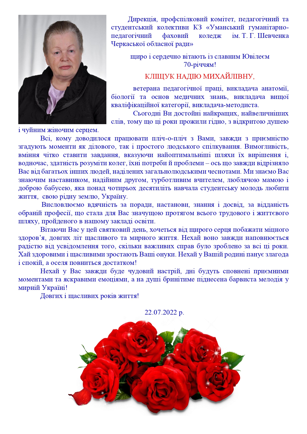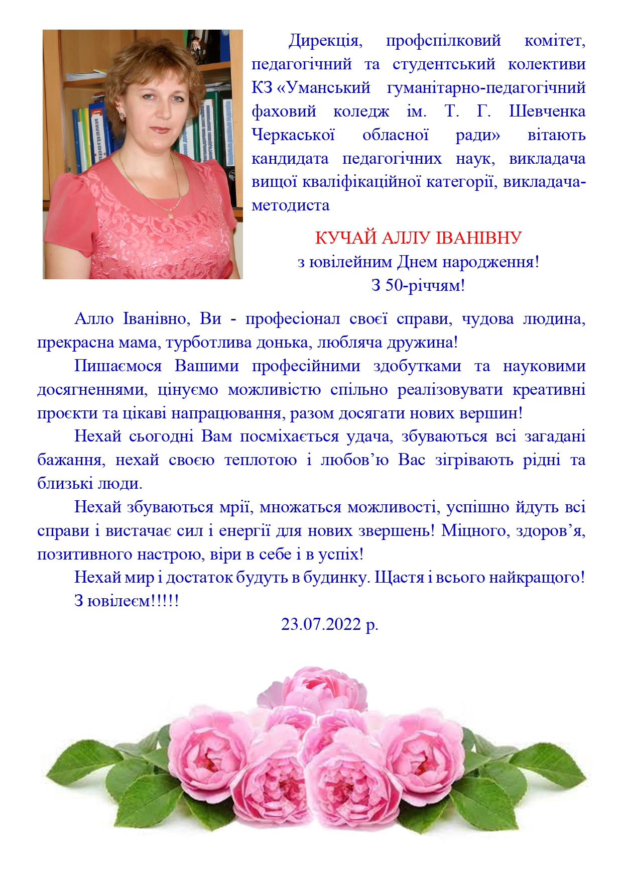 Шановні працівники бухгалтерії (головний бухгалтер - Дашицька А.В.) КЗ «Уманський гуманітарно-педагогічний фаховий коледж ім. Т. Г. Шевченка Черкаської обласної ради»! Прийміть вітання з вашим професійним святом. Без вас неможливо уявити фінансово-господарський розвиток нашого коледжу! Бажаємо вам успіхів у роботі, наснаги до подальшої плідної праці та нових звершень.