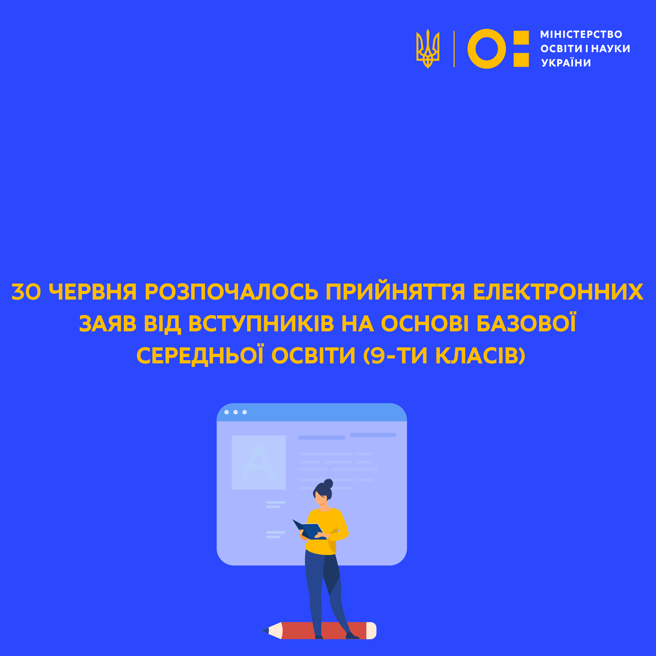 Сьогодні, 30 червня 2022 року, розпочалось прийняття електронних заяв від вступників на основі базової середньої освіти (після завершення 9-го класу). Подати електронні заяви на бюджетну та контрактну форми навчання можна до 18:00 13 липня. Після цього прийом заяв буде можливий тільки на контракт (до кінця жовтня), якщо в закладі освіти є відповідні небюджетні конкурсні пропозиції. Детальніше