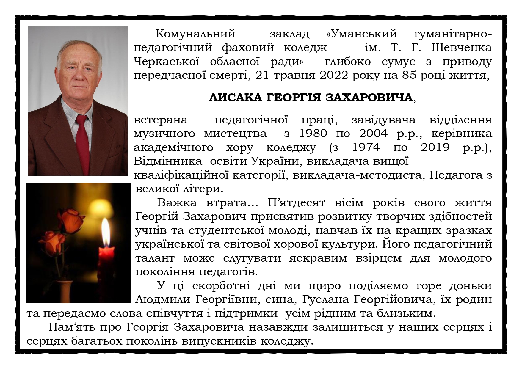 21 травня 2022 року викладачем іноземної мови, кандидатом педагогічних наук, доцентом Лебідь І.В., та в.о. директора, доктором філософії Крамською З.М. КЗ «Уманський гуманітарно-педагогічний фаховий коледж ім. Т.Г. Шевченка Черкаської обласної ради» в рамках Дня Європи в Україні спільно з освітянами Польщі, Чехії, Угорщини, Англії та Шотландії організовано та проведено захід «Україна і європейські цінності».