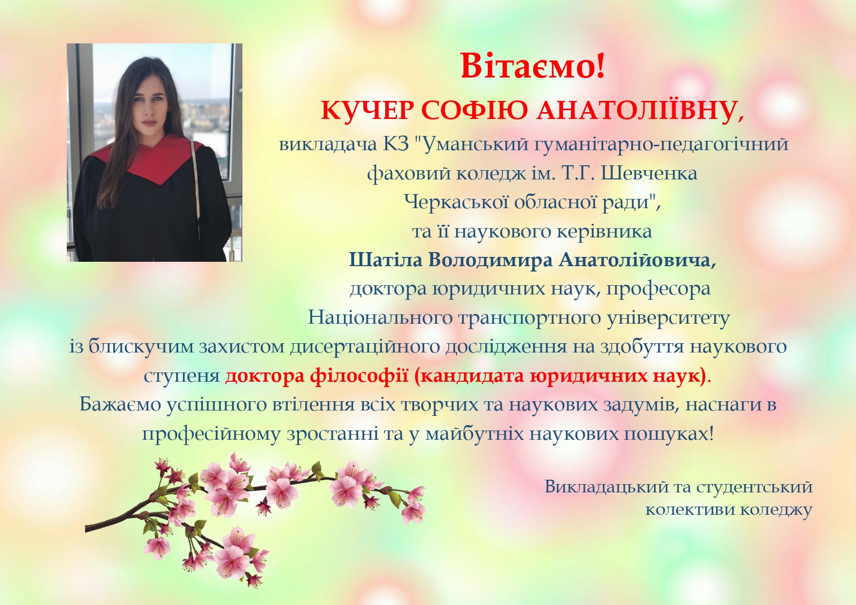 КЗ «Уманський гуманітарно-педагогічний фаховий коледж ім.Т.Г.Шевченка Черкаської обласної ради» вітає практичних психологів - кандидата психологічних наук Піковець Наталію Вікторівну та Гончаренко Ірину Олексіївну, викладачів психології та студентів освітньої програми « Соціальна робота, практична психологія» відділення соціальної та спеціальної освіти (завідувач Сидорчук Л. П.) з нагоди Всеукраїнського дня психолога!