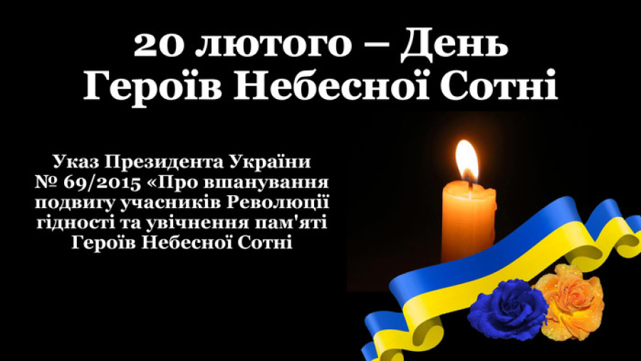 20 лютого щорічно відзначається День Героїв Небесної Сотні згідно з Указом Президента від 11 лютого 2015 року № 69/2015 "Про вшанування подвигу учасників Революції Гідності та увічнення пам’яті Героїв Небесної Сотні". Детальніше